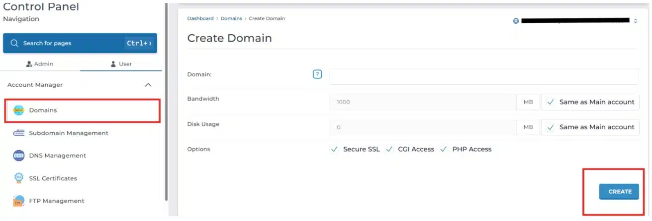 After configuring the domain settings to your preference, click the Create button at the bottom of the page. DirectAdmin will process the request and set up the necessary directory structure for your new website immediately.