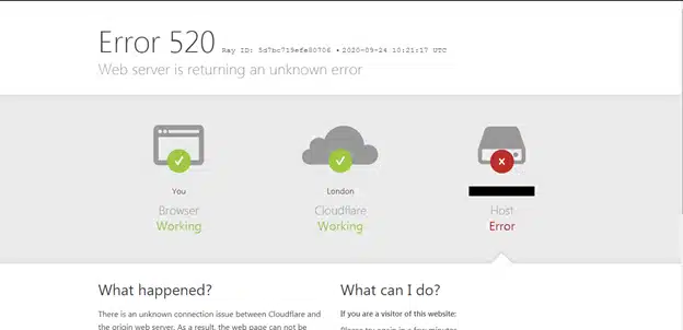 Cloudflare error codes 520, 521, and 522 usually mean Cloudflare cannot properly connect to your origin server.
