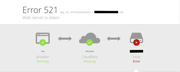- Error 521: Server refused connection — your origin server is down or rejecting Cloudflare’s requests.