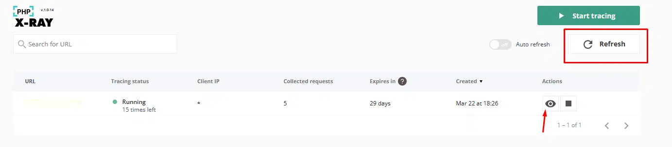 PHP X-Ray is a passive listener, meaning it only records data when someone actually visits the site. While the trace status shows as Running, open a new browser tab and visit the page that is experiencing slowness. You may want to refresh the page a few times or use a tool like curl via terminal to generate several requests. This ensures the X-Ray App has enough data samples to provide an accurate breakdown of the performance issues.